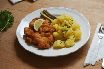 Smažený kuřecí řízek (150g), hranolky/krokety