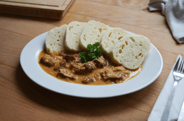Pražská hovězí pečeně, houskový knedlík/rýže